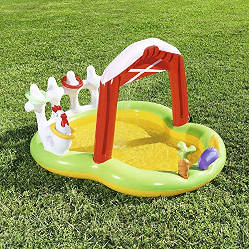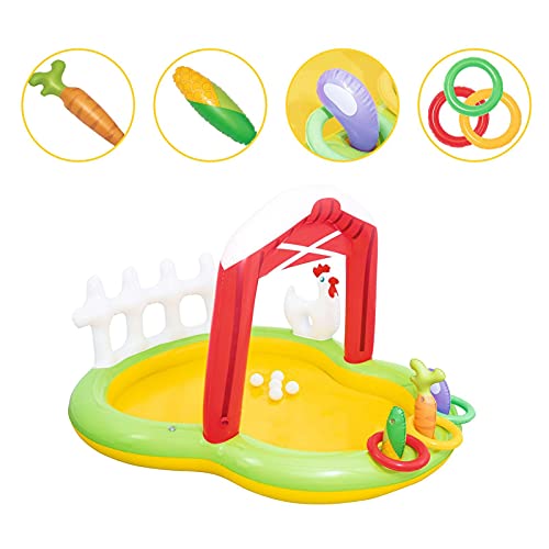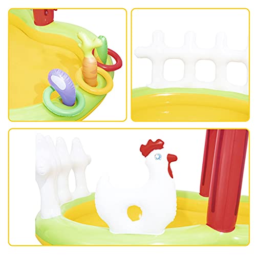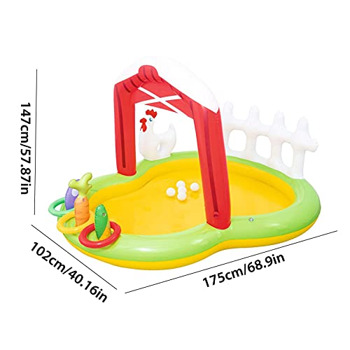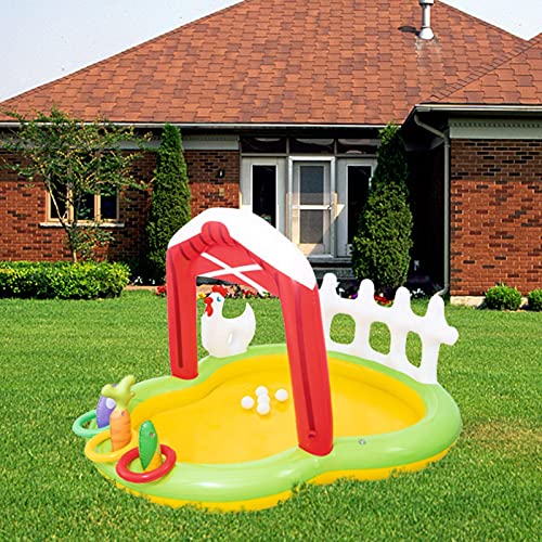 Geschikt voor kinderen: het opblaasbare zwembad is zeer geschikt voor kinderen die graag in het water spelen. Het opblaasbare zwembad met uniek boerderijthema met glijbanen laat je kinderen genieten van het plezier van spelen in het water deze komende zomer en ontspannen.