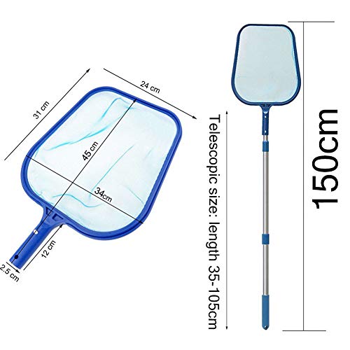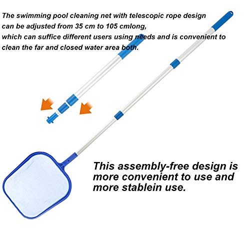 Uitbreidbare lengte: met 41,3 inch verstelbare aluminium telescoopmast. Verspil geen geld meer bij het kopen van afzonderlijke onderdelen. Haal de verpakte skimmer-set. De reinigingsset is speciaal ontwikkeld voor gebruik in elke omgeving, zoals in whirlpools, zwembaden, spa’s, springkachels, visvijvers en fonteinen.