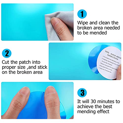Eenvoudig te gebruiken: je hoeft alleen je opblaasbare product te reinigen voordat je de patch gebruikt, dan het product uit elkaar scheuren, op de plaats te plakken die moet worden gerepareerd en wacht tot de hechting stevig is.
