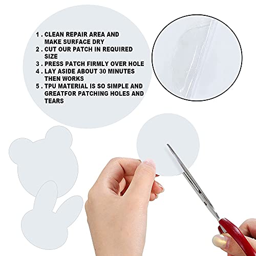Brede toepassing: deze reparatiepatches van kunststof zijn geschikt voor het repareren van opblaasbare bedden, opblaasbare boten, opblaasbare kussens, opblaasbare kussens, zwemmen, strandballen, slaapzakken, zwemringen, enz.