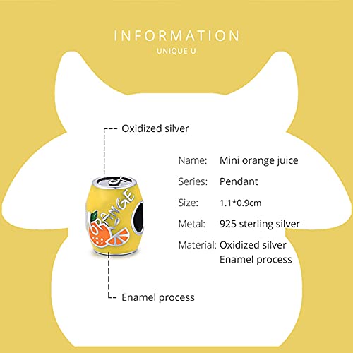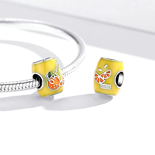 HMMJ Bedelhanger, ingeblikte mini-sinaasappelsap 925 sterling zilveren bedelkralenset voor Pandora Chamilia en Europese…