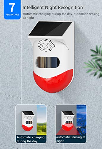 【Waterdichte functie】 Opgewaardeerd intelligent zonne-stroboscoop, IP67 waterdichte kwaliteit, ABS solide schaal, geschikt voor elk weer en buitenomgeving, geen valse alarmen.
