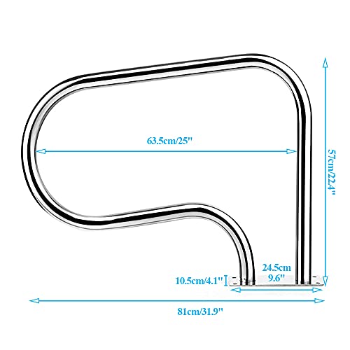 Specification: Comif-bar stool Zwembad reling 32 “× 22.5” 304 roestvrij staal veiligheidsleuning, met snelle installatiebasis, zilver anti-roest