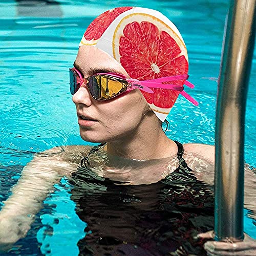 Specification: Badmutsen Om Haar Droog Te Houden Dames Badmuts, Zwemmen Cap Roze Rood Grapefruit Op Witte Ronde Zwemmen Cap Hoed Voor…