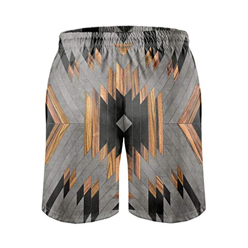 Ktewqmp Zomerzwembroek van aztekenhout en beton voor mannen, zwembroek met zakken voor binnen