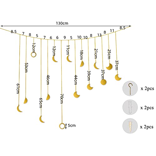 De metalen maanhanger is gemaakt van metaalmateriaal, en de magische maanhanger is gemaakt van acrylmateriaal, met ronde gaten aan beide uiteinden, uitgerust met 2 haken en 2 expansiebuizen, die gemakkelijk te installeren zijn en aan de muur hangen.