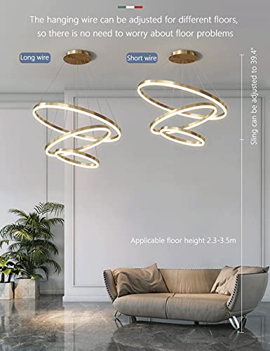 □ Ringontwerp, gouden lamplichaam, lijkt op twee water- en melkringen, aanhoudende, de hangende draad kan worden aangepast aan de hoogte van de kamer, en u kunt de manier waarop u leuk vindt, de meeste kleuren kunnen aanpassen, kunnen worden geselecteerd