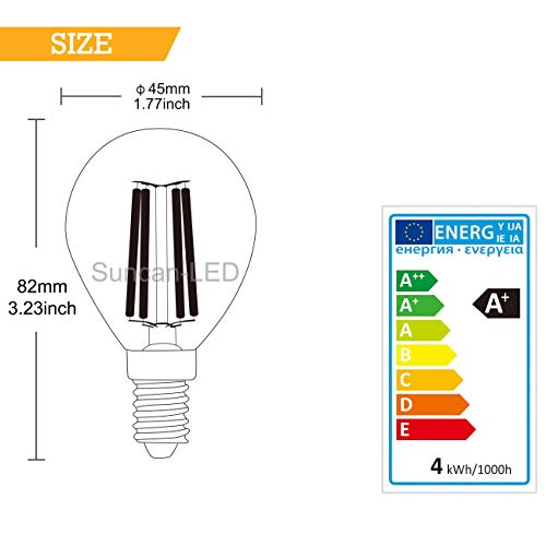 Specification: Suncan E14 Filament LED-lamp G45 – E14 LED-lamp 360 lumen, warm wit 2700K, niet dimbaar, helder glas, AC 220V-240V – 6…