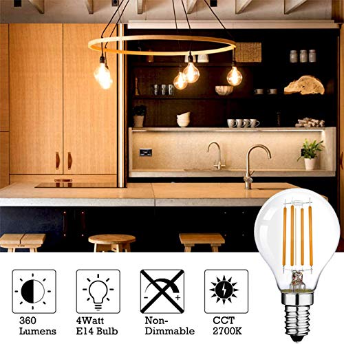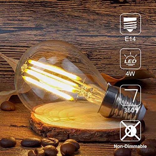 Suncan E14 Filament LED-lamp G45 – E14 LED-lamp 360 lumen, warm wit 2700K, niet dimbaar, helder glas, AC 220V-240V – 6…